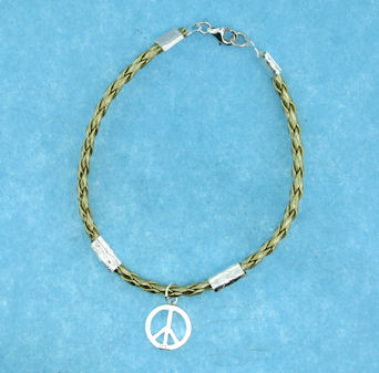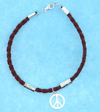 Chocolate leather Peace Sign bracelet with a sterling silver lobster claw clasp.