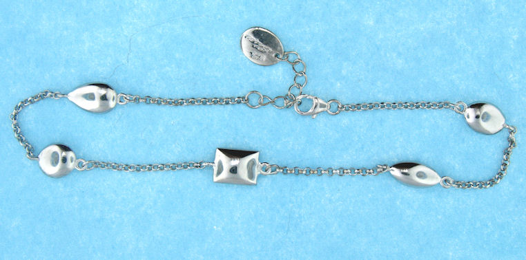 Sterling silver 9.5" nickel-free, high polished Ferroni Shape anklet featuring a cluster design. Also includes a rhodium plate finish, which gives it its lustrous