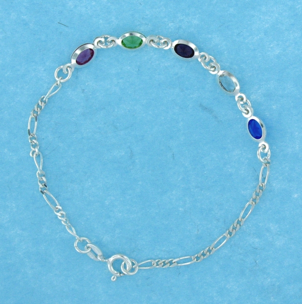 Sterling silver 5 mixed cz stones available in 7" bracelet and 10" anklet sizes. We guarantee that our Sterling silver merchandise is 925 sterling or above.