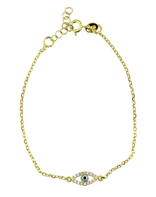 Gold plated sterling silver Lucky Evil Eye Cubic Zirconia Bracelet.