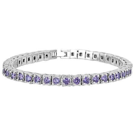 White Gold Plated over Brass Purple CZ Women's Tennis Bracelet