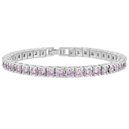 White Gold Plated over Brass Pink CZ Women's Tennis Bracelet