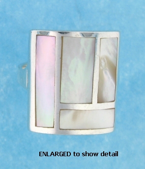 Description: Sterling silver nat. white mother of pearl ring.