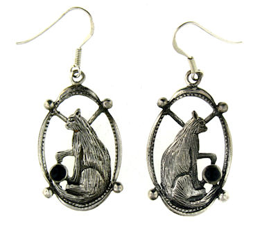 Sterling silver cat in nautical hoop with black onyx earrings.