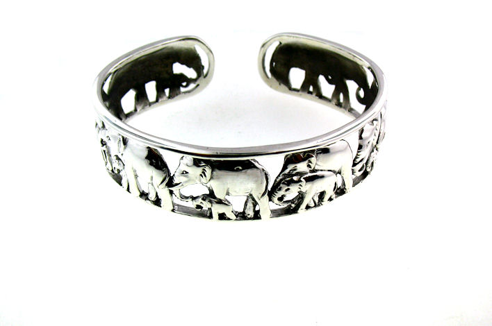 Sterling silver elephant cuff bracelet. We guarantee that our Sterling silver merchandise is 925 sterling or above.